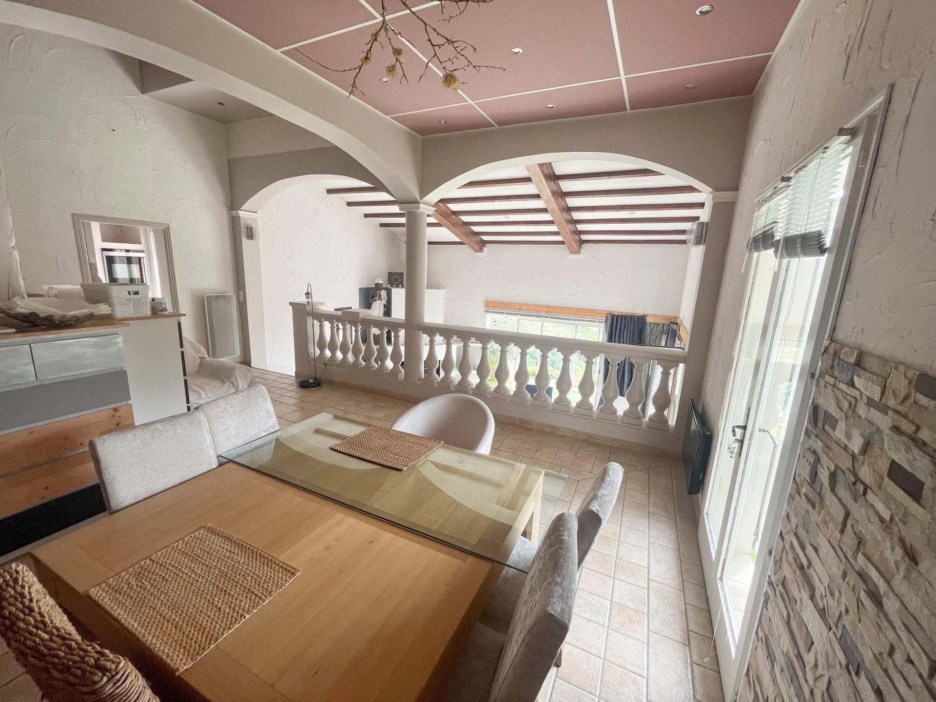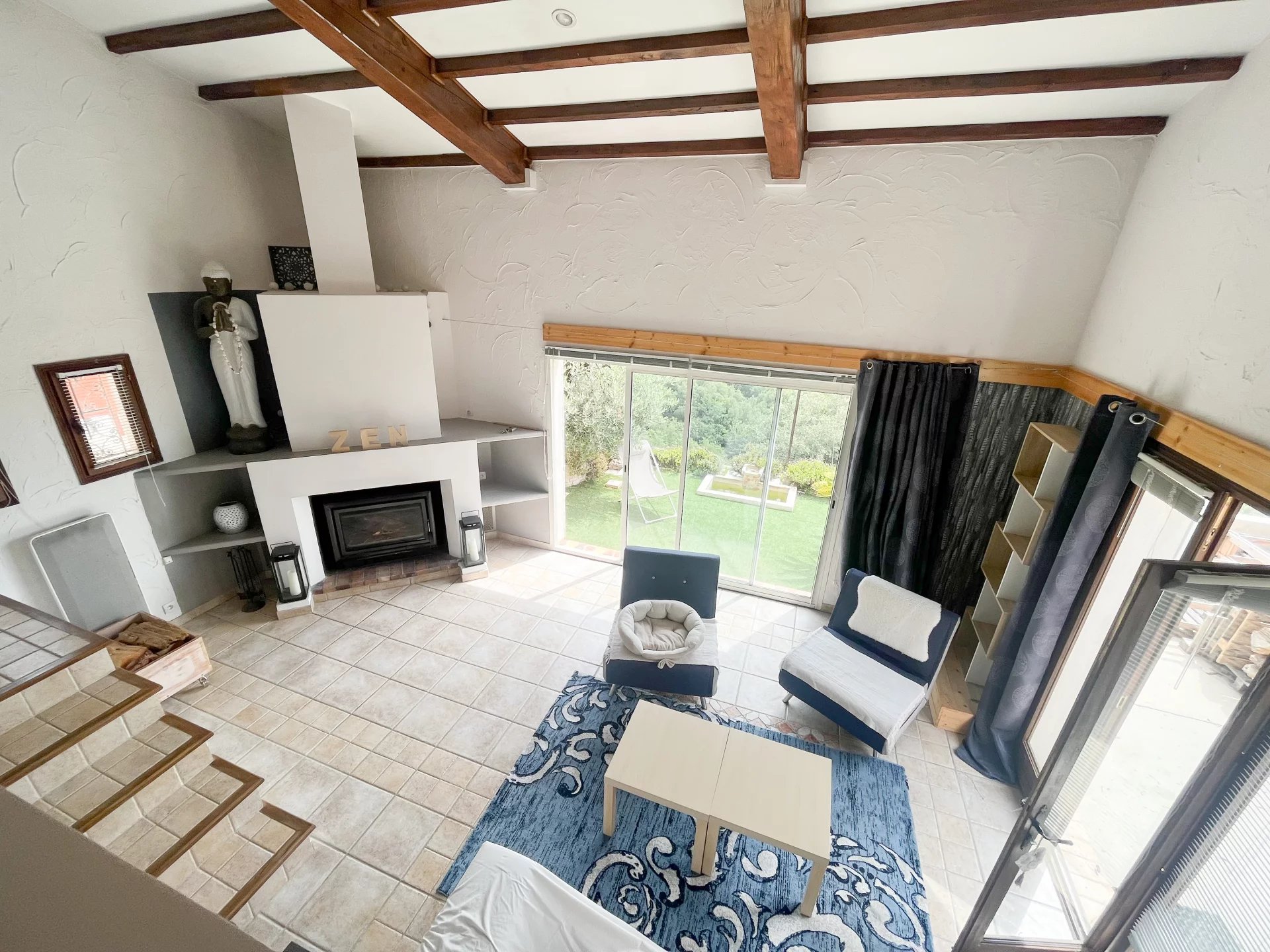 La maison se compose d’une entrée, une salle à manger de 25M², cuisine indépendante équipée, un séjour avec cheminée de 22M².