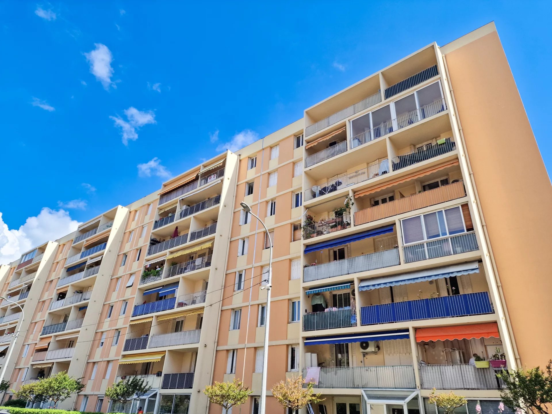 NICE EST / PASTEUR, Dans une résidence sécurisée datant de 1964 et dotée d’un gardien, ce charmant appartement au 2ème étage avec ascenseur vous séduira. D’une superficie de 69 m², ce lumineux 3/4 pièces traversant vous offre une terrasse ensoleillée de 9 m² exposée plein sud ainsi qu’une loggia de 4 m².