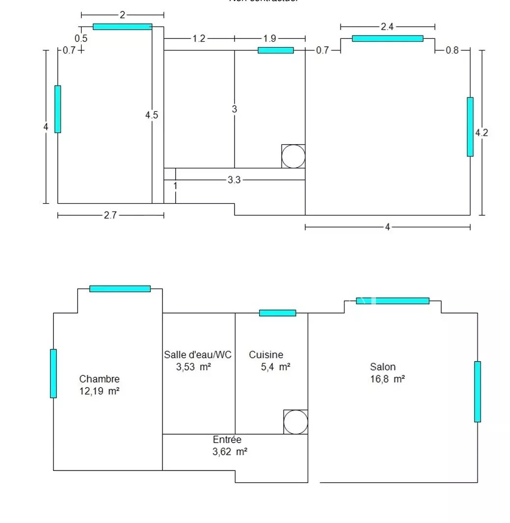 L’appartement se compose d’une entréé, séjour, cuisine indépendante, chambre, cuisine indépendante, une salle d’eau avec Wc.